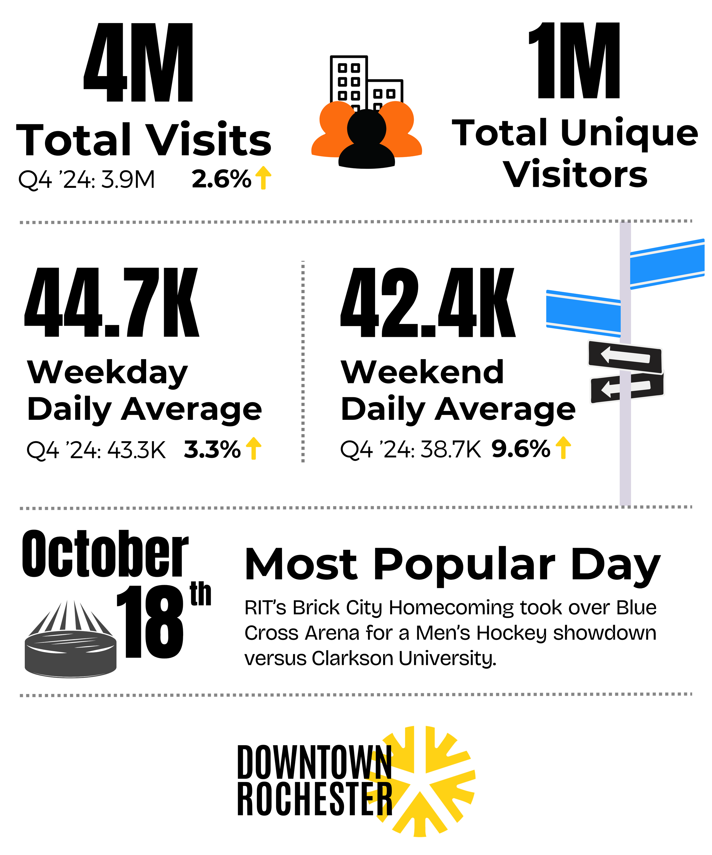*Data above includes visits from residents, workers, and visitors longer than 10 minutes to the downtown core of Rochester, NY.